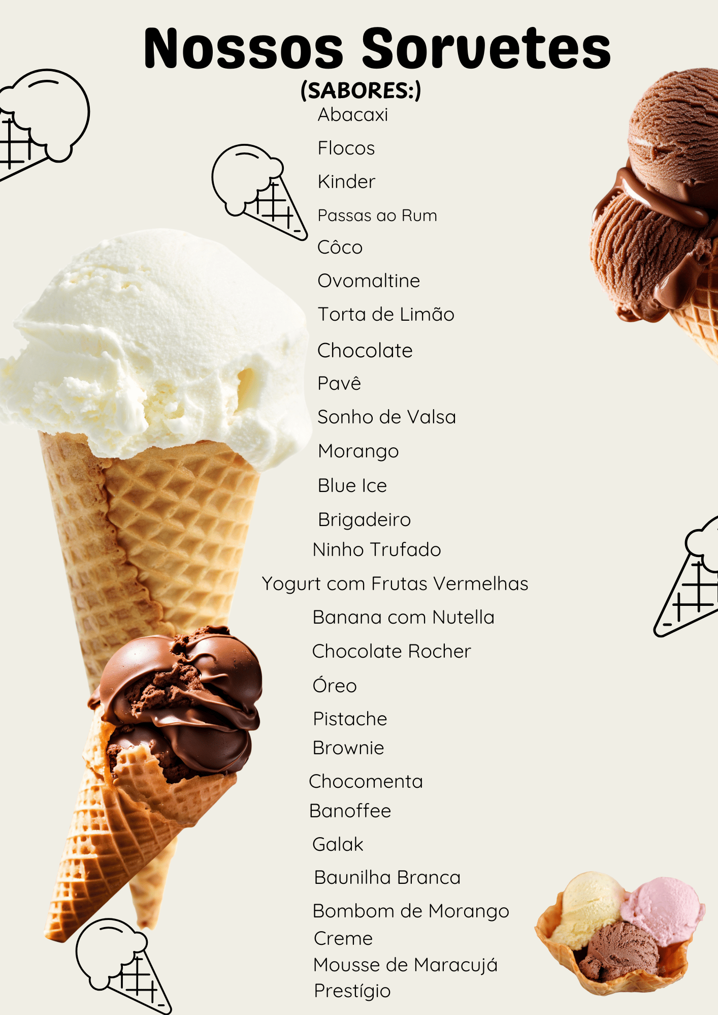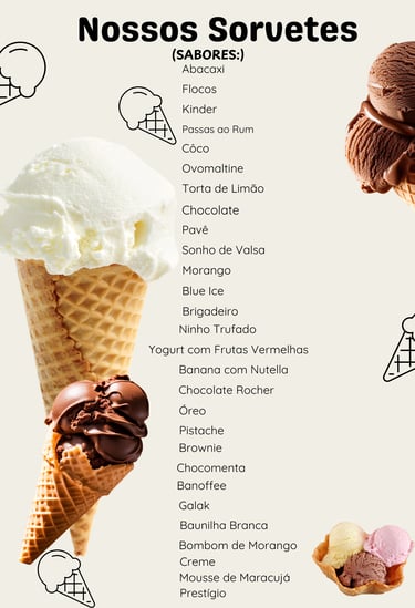 Nossos sorvetes são feitos com ingredientes variados , nos incomparáveis sabores: